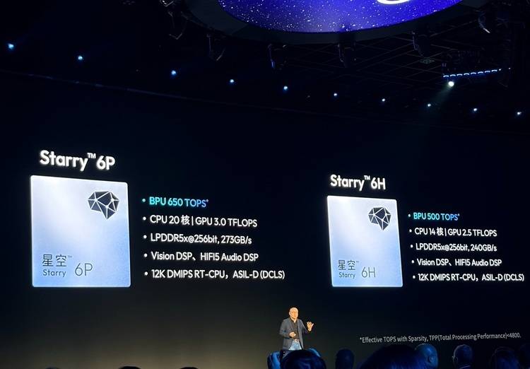 星空Starry 6P,这款采用5nm车规制程的芯片,以其惊人的性能参数震撼了业界。它拥有高达650TOPS的BPU算力,配备20核CPU,内存带宽达到273GB/s,甚至能够支持本地运行300亿参数的Qwen 3.0模型。与上一代旗舰征程6P的560TOPS算力相比,星空6P的算力提升近100TOPS,无疑为车载智能计算树立了新的标杆。